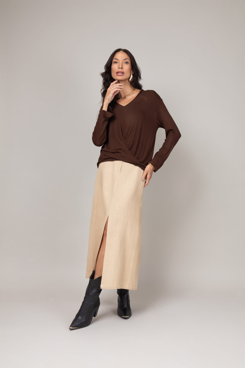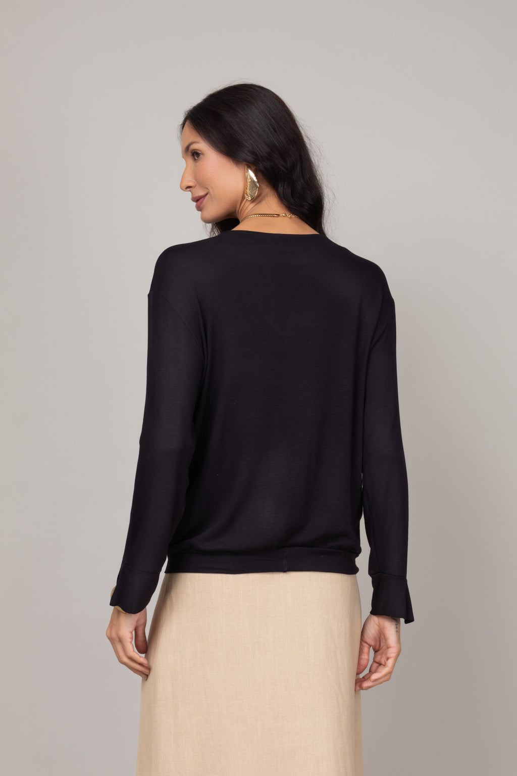 - Decote em V;
